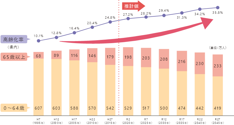 (※)65歳以上の高齢者の数が増える一方、子どもの出生率が減っ ている現象のこと